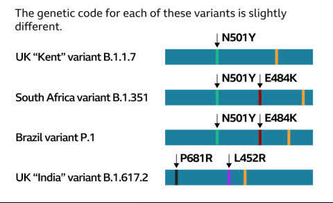 贝塔和伽马变异毒株还有一个关键的突变,称为“E484K”,可能使病毒得以避开免疫系统的阻击。