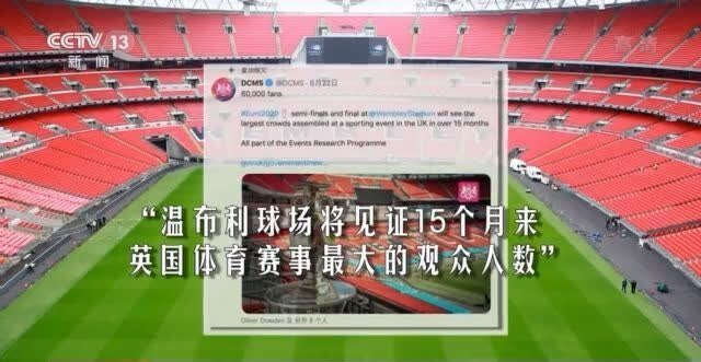 英国数字化、文化、媒体与体育部在置顶的官方推特上写道:“温布利球场将见证15个月来英国体育赛事最大的观众人数”。