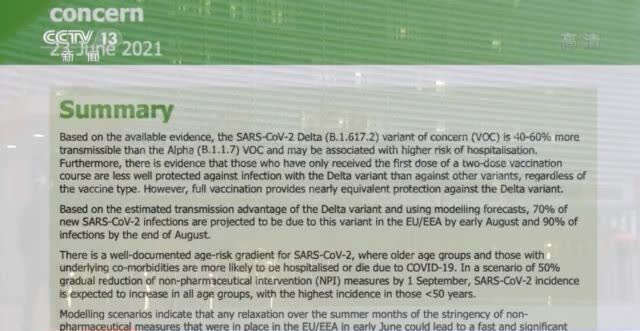 6月23日,欧洲疾控中心发布了最新的疫情模型预测:预计到8月初,欧盟及欧洲经济区国家的新增确诊病例中,70%都将因“德尔塔”变异毒株致病,而到了8月底,这一比例会上升至90%。
