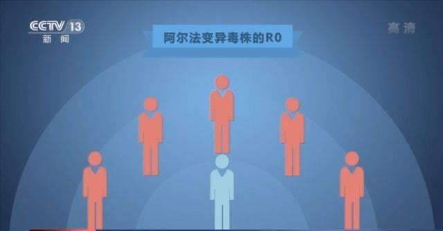 “阿尔法”变异毒株的R0为4—5,也就是说在没有任何防疫措施介入的情况下,一名感染了“阿尔法”变异毒株的患者,平均能够把病毒继续传染给4—5个人。
