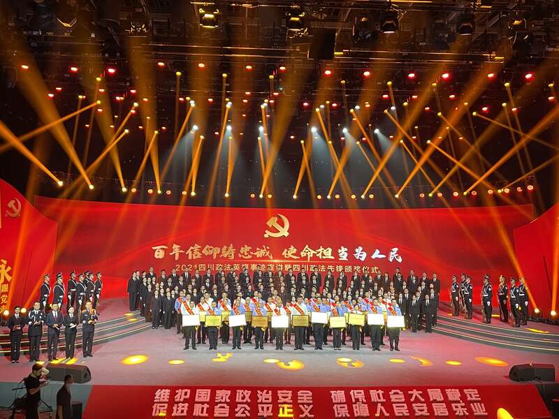 活动上还分享了仪陇县人民检察院分类救助事实孤儿、彭州市人民法院祝增巧在田间地头办理基层民事案件等集体和个人的事迹,并对获得“四川政法先锋”的集体及个人进行颁奖。
