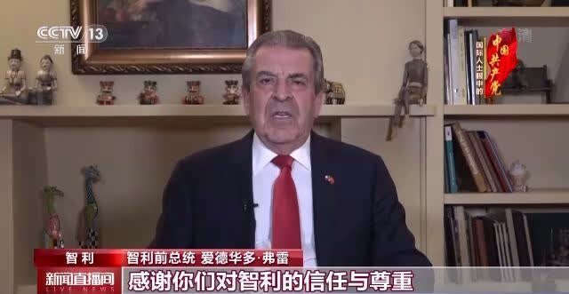 智利前总统 爱德华多·弗雷:中国共产党百年华诞举世瞩目,我向中国人民表达我的祝贺,我还要向中国所有的政府机构送上祝福。感谢你们对智利的信任与尊重,与我们共同协商并推动让双方获益的全面协议,共建两国人民美好的未来。