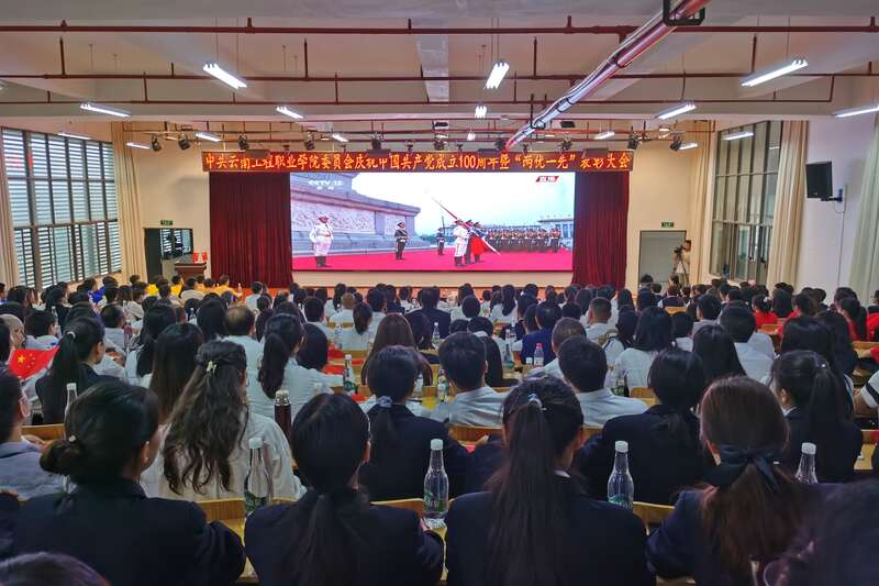 今天上午,昆明市安宁职教园区8所院校、两万余名师生以及安宁市社会各界,分别在体育馆、党建书屋、各支部党员活动室、教室等场所集中收看庆祝中国共产党成立100周年大会直播。