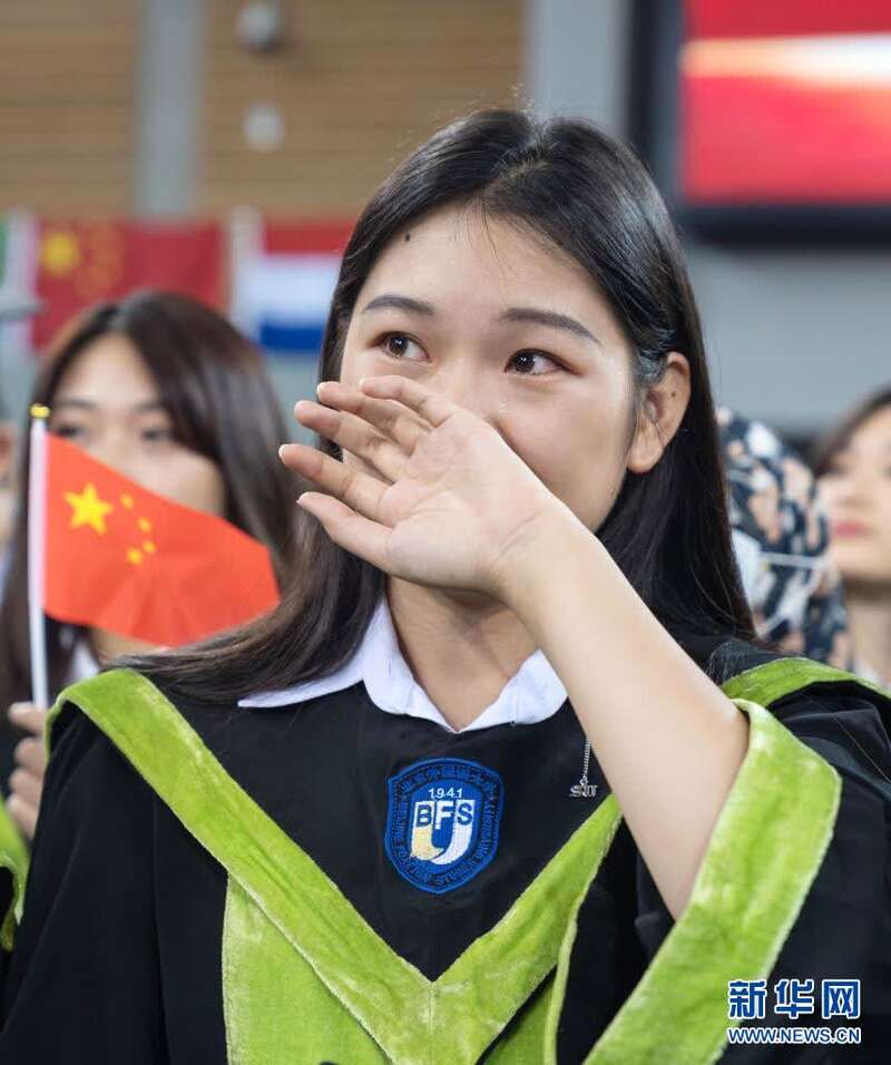 7月2日,在北京外国语大学,一名毕业生在毕业典礼上留下眼泪。新华社记者 才扬 摄