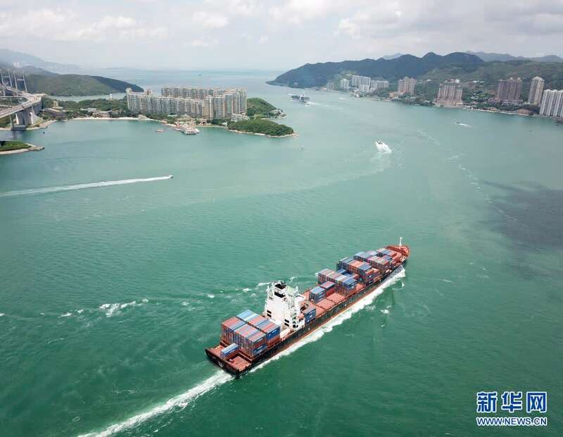 香港汀九桥附近,一艘货轮驶向码头(6月11日,无人机照片)。新华社记者 李钢摄