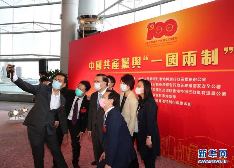 参加在香港举行的“中国共产党与‘一国两制’主题论坛”的嘉宾合影留念(6月12日摄)。新华社记者 李钢摄