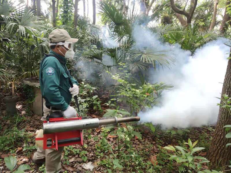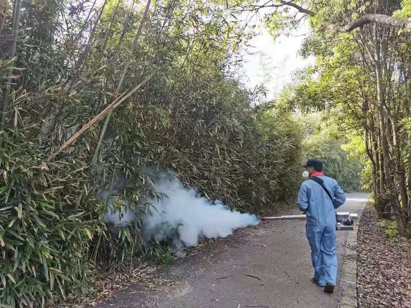 梅雨季节到来,园区内蚊虫密度也一度增加。成为困扰防制人员的难题是,蚊虫孳生地类型更为复杂,尤其是暗藏的孳生地。为处置好这些潜在孳生地,防制人员逐个排查,逐个控制,连续一周人均日行3万多步投放灭蚊幼缓释剂,在处理树洞积水点时面部被树枝、灌木划伤已是常事。最终在协同努力下攻克了位于“隐秘角落”的孳生地,蚊虫密度得到了控制,保证游客不受蚊虫侵扰,拥有舒适的游园体验。