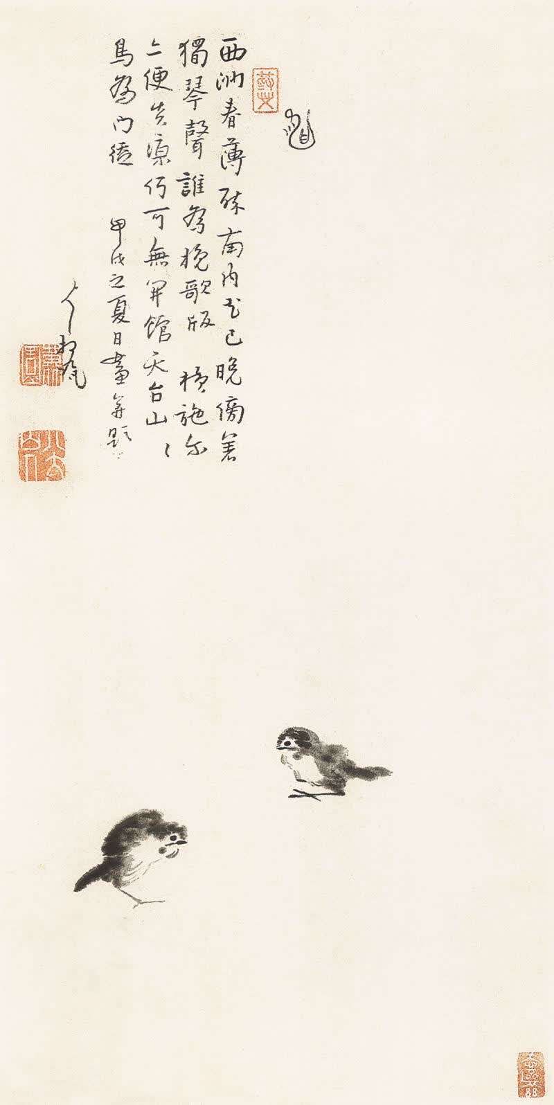 八大山人 双鸟图轴 纸本墨笔 75.3cm×35.8cm 1694年 浙江省博物馆藏