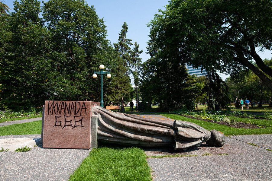 被推倒的维多利亚女王雕像由英国雕塑家乔治·弗兰普顿(George Frampton)设计,自1904年揭幕以来一直立于曼尼托巴议会大楼。另一座相对较小的英国女王伊丽莎白二世的雕像也被推倒,人们还爬到被推倒的雕像上拍照。这两位女王都被视为英国殖民史的代表。加拿大第四大城市卡尔加里的警方也于1日表示,该市有10座教堂都在夜间被橙色和红色油漆泼洒,其中一间教堂的窗户也被砸碎。