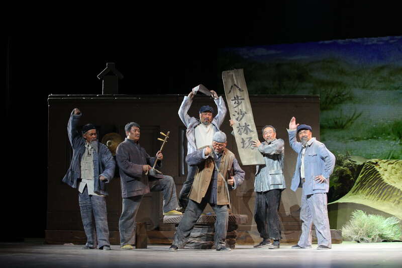 《八步沙》以真实故事为素材,塑造了以郭朝明、贺发林、石满、罗元奎、程海、张润元为原型的舞台艺术形象,再现当年“六老汉”造林治沙的感人事迹。