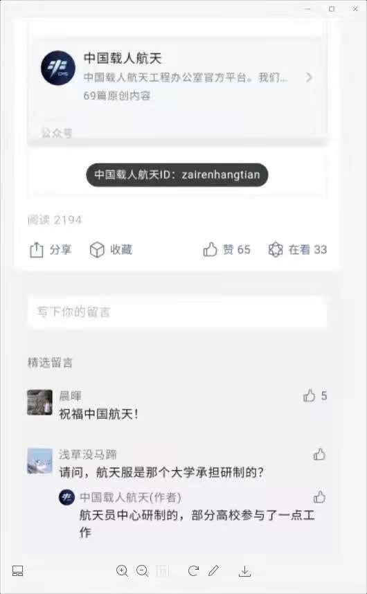 中国载人航天微信文章问答 图片来源:中国载人航天微信公众号