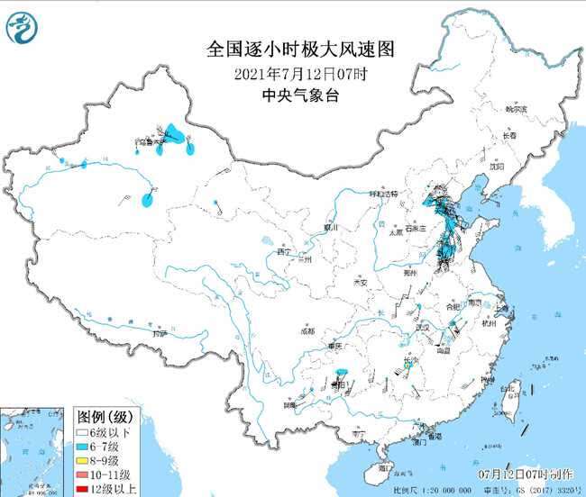 随着早高峰的到来,各地路上出行车辆逐渐增多,12日8时左右北京市区雨势加大。6至7时华北平原、黄淮东部一带出现瞬时6~7级大风,其中天津南部滨海水厂站监测到了21m/s的9级瞬时大风。风雨对各地早高峰出行带来影响。
