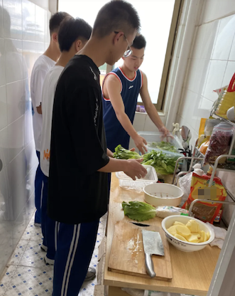 起初,他给同学们炒菜