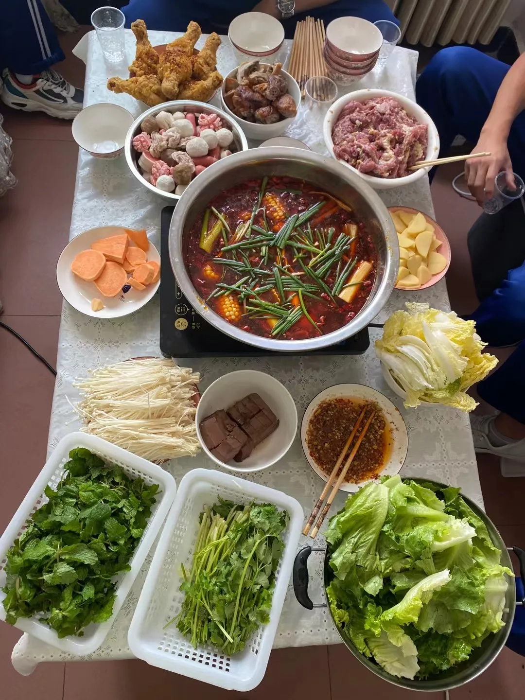 分批次请了100多名学生到家里吃饭