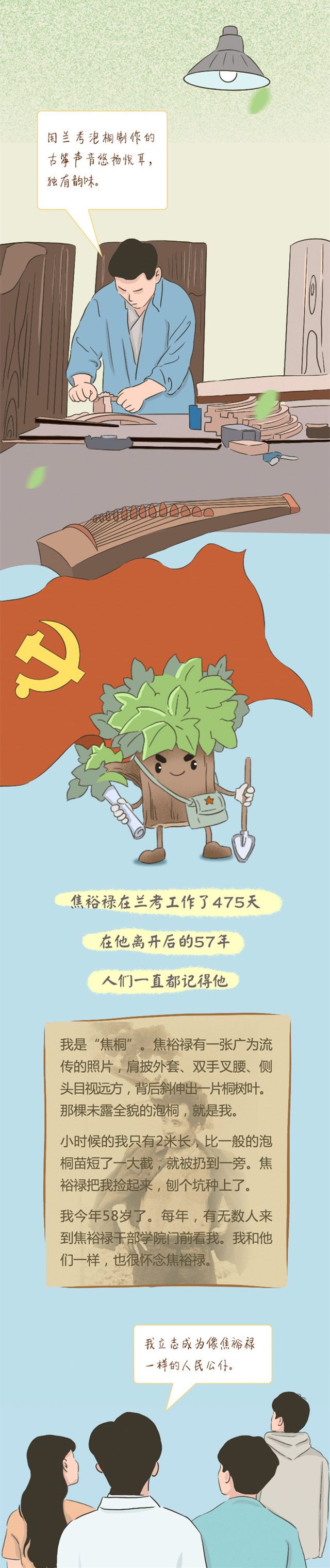 天天学习河南兰考,焦裕禄干部学院门口,一棵泡桐树粗壮挺拔,枝繁叶茂。那是1963年春天焦裕禄亲手种下的,兰考人都叫它“焦桐”。