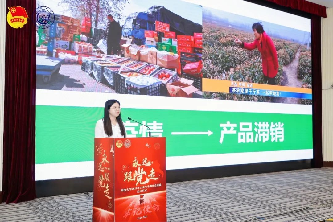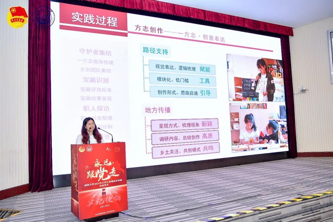 会上,2020年上海市“知行杯”获奖项目《乡村共振,设计助农——决战脱贫攻坚,我为家乡代言》代表张琪、《把家乡文化编成书——青年共创行动激活乡村文化振兴》代表王桨现场讲述实践故事,分享实践经验。吴求德等5位暑期社会实践学生代表以诗朗诵的形式,表明同济学子投身社会实践、贡献青年力量的信心与决心。