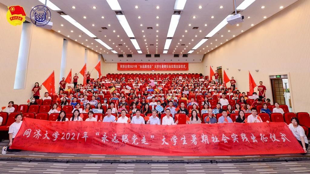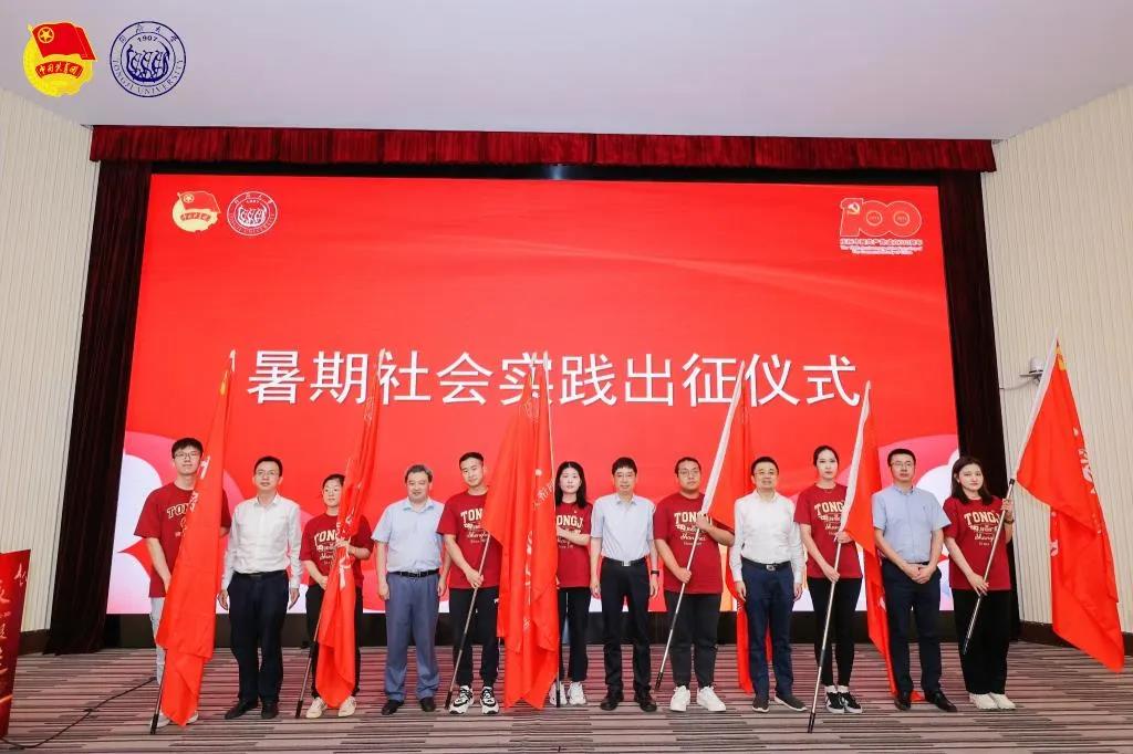 7月8日,同济大学2021年“永远跟党走”大学生暑期社会实践出征仪式在四平路校区举行。校党委副书记吴广明,校长办公室、党委宣传部、教师工作部、学研工部、科研管理部负责人,各学院团委书记,2021年暑期社会实践指导教师代表和实践团成员代表出席了活动。吴广明等为实践团队代表授旗。与会师生挥旗出征并进行宣誓,同济大学2021年大学生暑期社会实践正式启动。