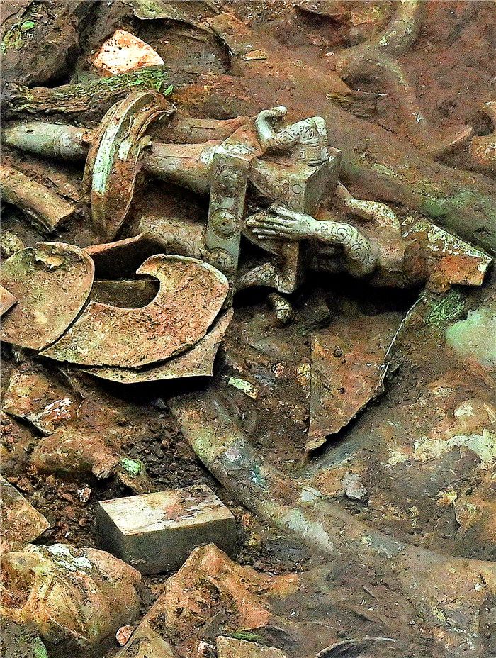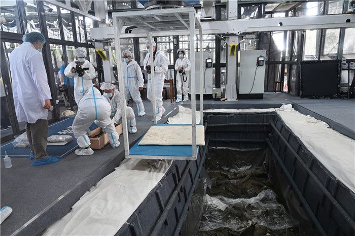 2021年7月12日,四川广汉,在三星堆遗址考古发掘现场,新一轮的考古发掘正如火如荼的推进中。祭祀坑里出现大量的青铜器和象牙