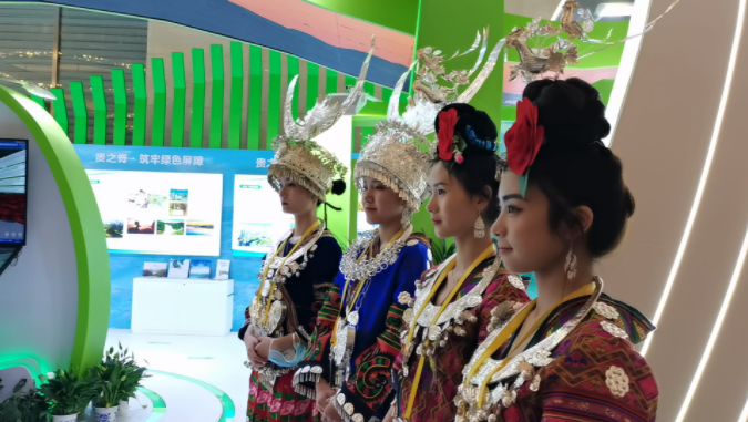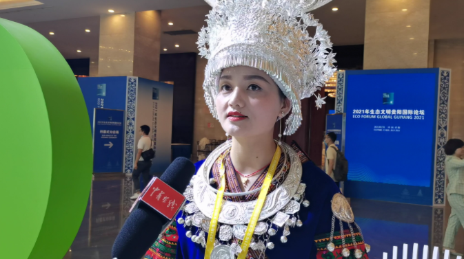 80后苗族姑娘杨晓英,来自贵州黔东南苗族侗族自治州雷山县。此次她带领团队身穿充满苗族风情的服饰,亮相贵州省生态文明建设成果展,大方地展现中国服饰之美。杨晓英告诉中青在线记者,此次活动中她的团队担任礼仪引导工作,“穿苗族服装来积极参加此次活动,是为了让更多的人了解我们的民族文化的同时,也希望能结交来自全球的朋友们,进一步交流合作”。