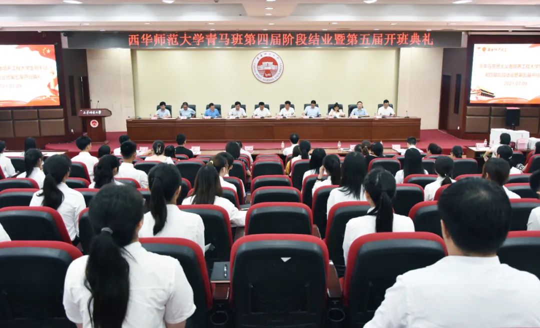 7月9日下午, 西华师范大学青年马克思主义者培养工程大学生骨干班第四届阶段结业暨第五届开班典礼 在华凤校区图书馆学术报告厅举行。校领导王安平、王元君、刘利才、张明、刘进、李敏、张泽钧,校党委常委曾庆亮、周勇、周道春出席典礼。典礼由校党委副书记刘利才主持。