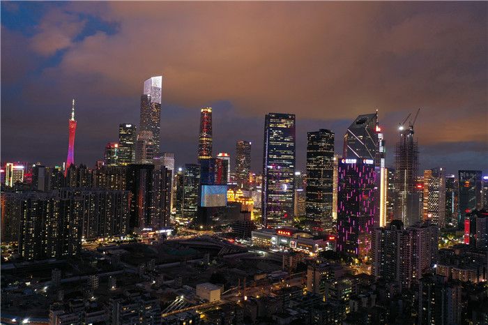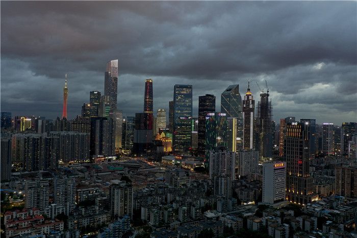 2021年7月19日,广州,第7号台风“查帕卡”生成,城市上空乌云密布。