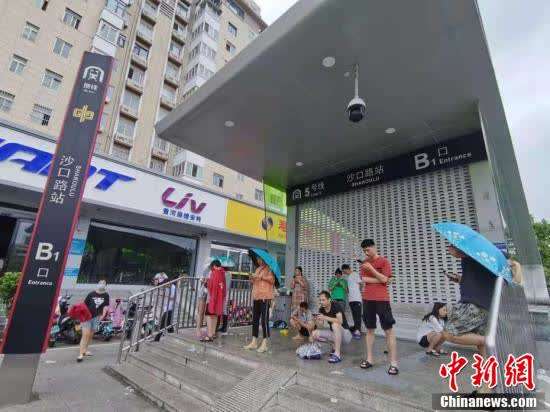 20日晚发生险情的郑州地铁五号线沙口路站出站口。 (中新社记者 李贵刚 摄)