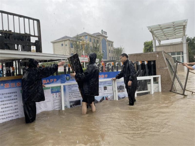 抢险组在库区大门、粮仓挡粮门等关键位置,通过搬运挡水沙袋阻挡库外积水,迅速安装启动多个抽水泵,抽排库区内积水;疏通组全面清理、疏通库区排水沟渠;巡查组仔细查看库区每一个角落。经过一天一夜抢险,汛情基本得到控制,目前粮库人员、储存粮食、设施设备总体安全,库区排水工作基本完成。