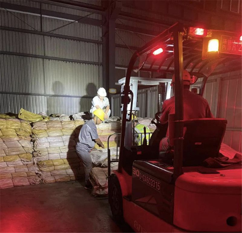 当晚23时30分,新郑基地接到新郑市应急管理局求助信息,因新郑市附近水库水位高涨,急需大批编织袋作沙袋控制险情。新郑基地党委第一时间响应,凌晨调运3万只编织袋支援抗洪一线。