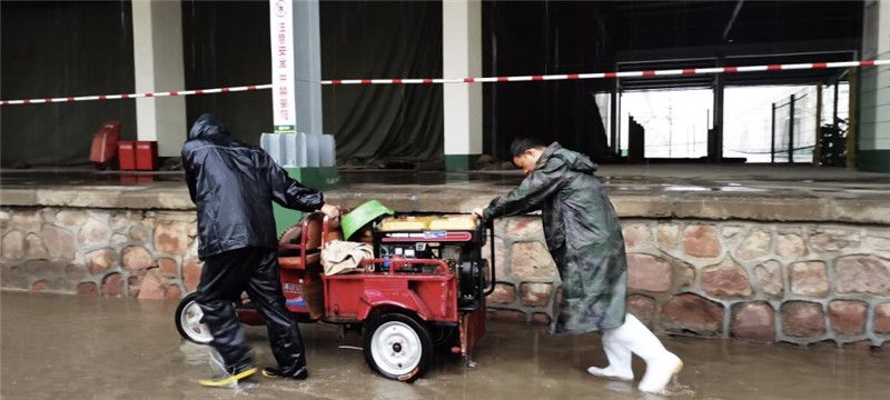 21日凌晨4时30分,因雨水冲断基地附近路段导致电路受损、全厂停电,造成排污泵无法工作、生产车间紧急停机等情况。新郑基地党委积极抢修电路,补充采买抽水泵、电缆等防汛设备,协调调用应急发电机和应急汽油排水泵、柴油排水泵等设备,确保厂区雨水外排正常。
