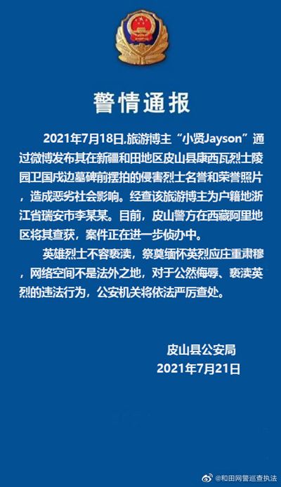 新疆警方:戍边烈士墓碑前摆拍的博主在西藏阿里地区被查获