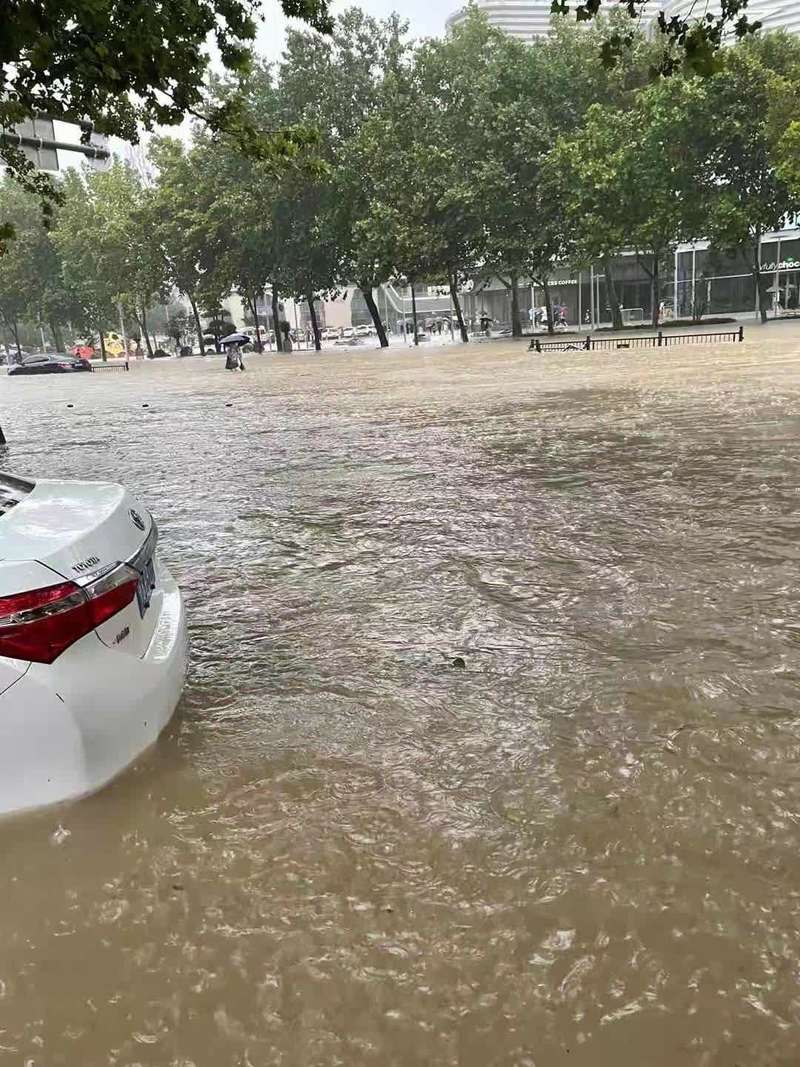 一位亲历者说,他在暴雨中蹚着水走了3个多小时。大雨中的城市一片漆黑,只能看到零星的亮光。他和不相识的行人互相搀扶着,走过在脚下缠绕着的绿色防尘网,踩过高低不平的地砖,绕过井盖被卷走后留下的漩涡。最终,他们找到了落脚处,停在路中央的公交车、路边能提供休息场所的饭店。他们在这里度过了夜晚。