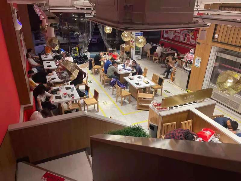 我们这里没有老人,有一个七八岁的小孩。我们就在这待着,找到个插座,我们轮流充电。凌晨一点1点左右,店里员工说,他们给大家煮了两大锅面条,大家能过来吃,管够,不够了就再煮一锅。当时我在二楼,听见一楼的大家都在鼓掌。吃完面条之后,大家都主动收拾碗筷、擦桌子。