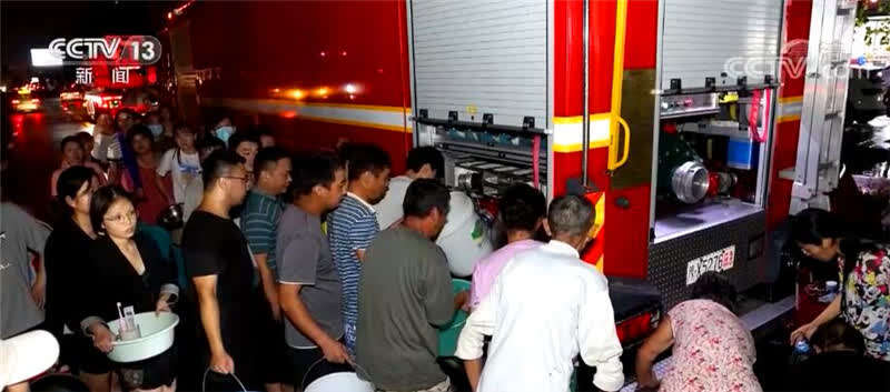 而在郑州长江路一小区门前,消防车为居民送水,保障大家的生活所需。暴雨灾害造成郑州很多小区停水停电停网,相关部门调动消防车送水供生活所需。