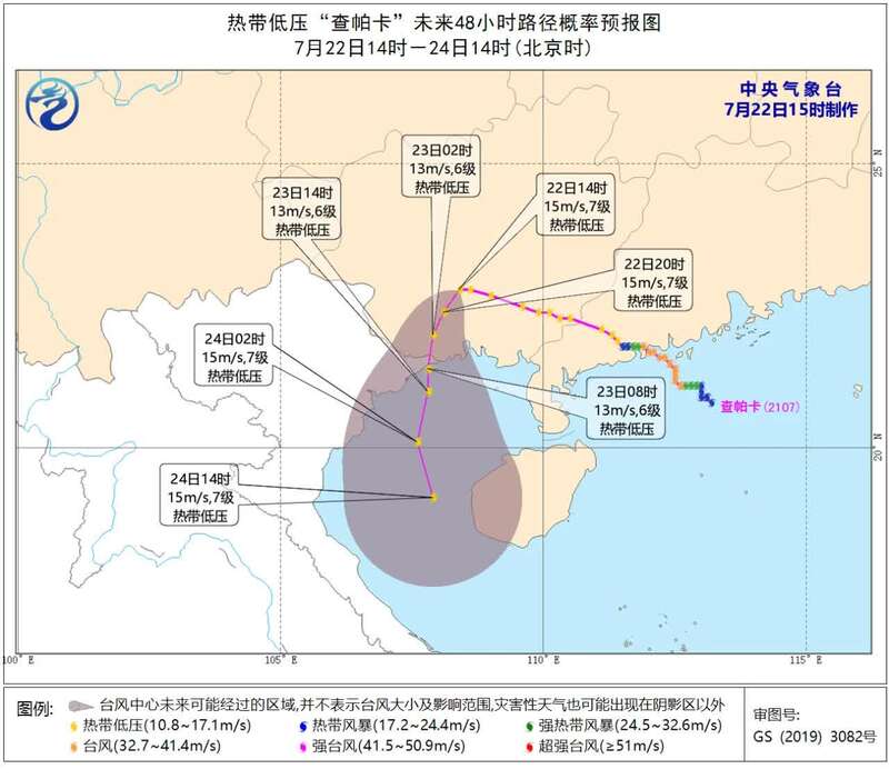 专家提醒,今年第7号台风“查帕卡”虽然登陆后已经减弱为热带低压,但其对华南的影响仍在继续,且未来进入北部湾后有可能再度加强。
