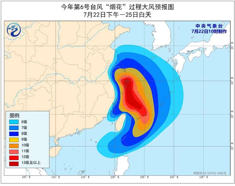 中国青年报客户端北京7月22日电(中青报·中青网记者 邱晨辉)记者刚刚从中国气象局获悉,中央气象台最新预报显示,今年第6号台风“烟花”将于7月24日夜间到25日白天在浙江北部到福建北部沿海登陆,预计登陆时强度为台风级或强台风级,但也不排除在浙江近海海面北上的可能。