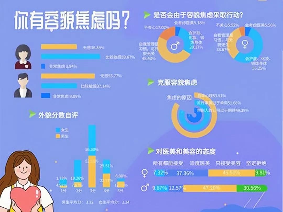 2021年2月,中青校媒面向全国2063名在校大学生开展关于“相貌”问题的问卷调查。结果显示,近六成的人存在一定程度的容貌焦虑。