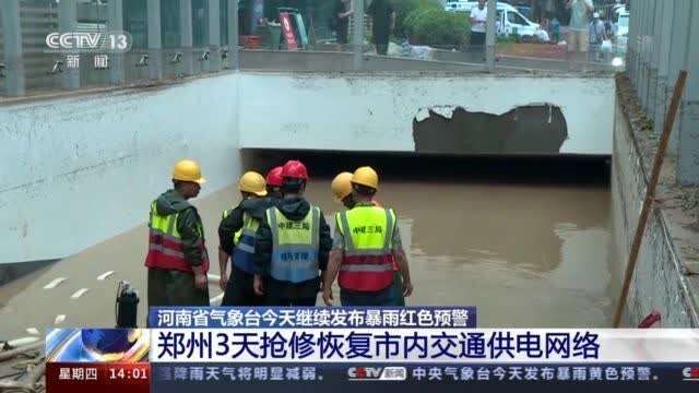 受持续强降雨影响,当前郑州市内一些涵洞桥隧的积水和内涝情况依然严重,交通、用电以及通信等问题亟待解决,当地正在抓紧进行清淤排水以及电力抢修工作。郑州市给抢险救援工作列了一个时间表。今天要确保恢复市内交通,明天要基本恢复供电,到后天,交通、供电、网络等基础性公共服务力量要正常保障民众的基本需求。因降雨出现险情的常庄水库和郭家嘴水库,目前的险情已初步得到有效控制。