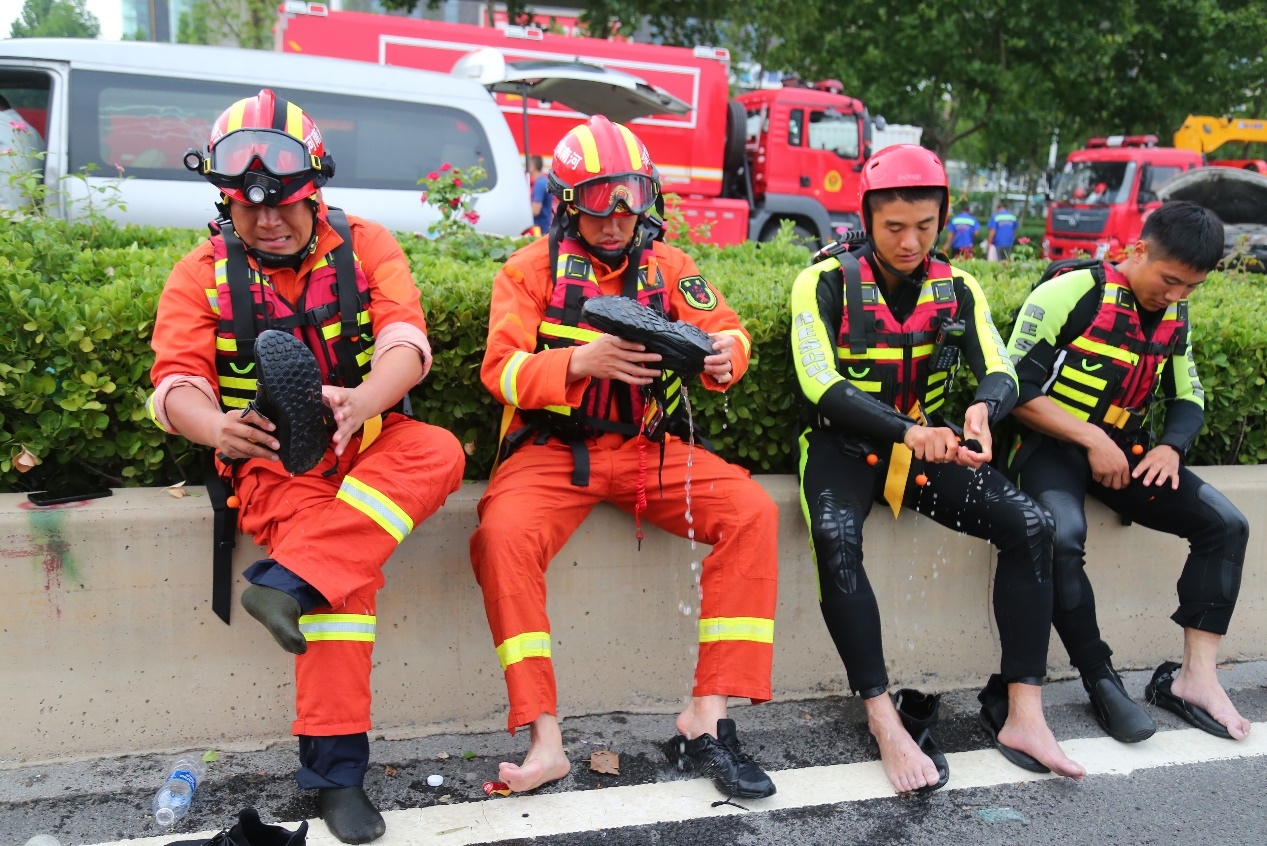 作为全国最大的交通枢纽站——郑州火车站,东广场地下旅客出站通道积水达半米多深,周边地一大道商城地下两层建筑积水约5米深,并伴随路面塌方的危险。郑州市火车站消防救援大队接到警情,联合洛阳消防抗洪抢险突击队共40人、12车、4搜舟艇,携带龙吸水系统、远程供水系统以及大功率排水泵等设备,铺设排水管道4条,6人一组轮换三班,24小时不间断持续开展抽水作业。截至23日17时,累计排水约2万余吨,坚决确保铁路枢纽安全。(通讯员 郝昕/文 河南消防 供图)