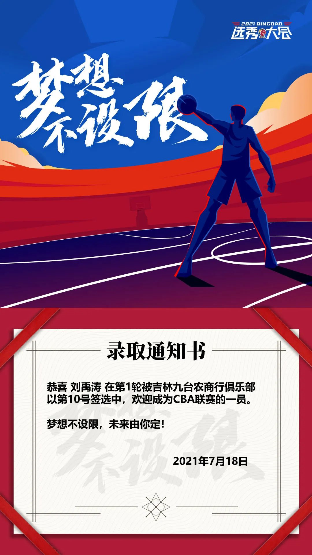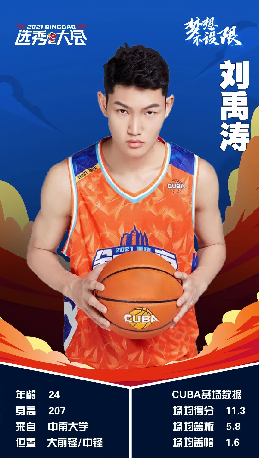 我校前锋/中锋刘禹涛,在第十顺位被吉林九台农商行俱乐部选中,在CUBA赛季中,他曾获得11.3场均得分5.8篮板以及1.6场均盖帽。