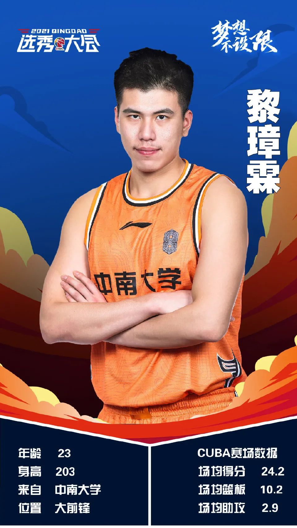 2021年CBA选秀大会于今日上午拉开序幕,我校前锋黎璋霖在第三顺位被山西国投俱乐部选中,他以1256分打破了尘封13年之久的CUBA历史得分纪录,刚刚结束的这个CUBA赛季,他场均砍下24.2分10.2篮板2.9助攻。