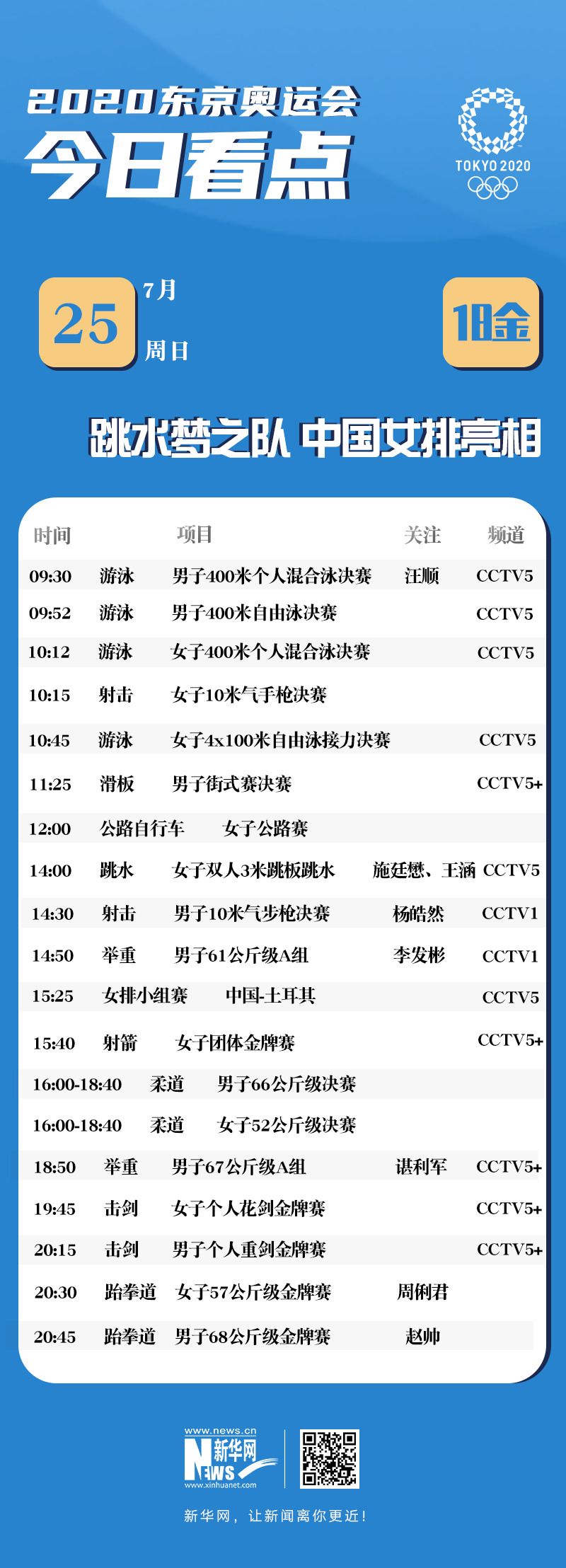 奥运今日看点:中国女排亮相 多个夺金点值得期待