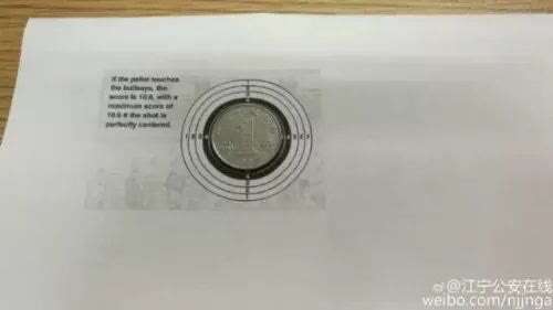 将10米气步枪靶打印在一张A4纸上,再被放置到10米外,靶纸1环直径只有4.55cm,而最高10.9环的靶心点,直径仅有0.5mm,10米之外,打到一元硬币才五环。
