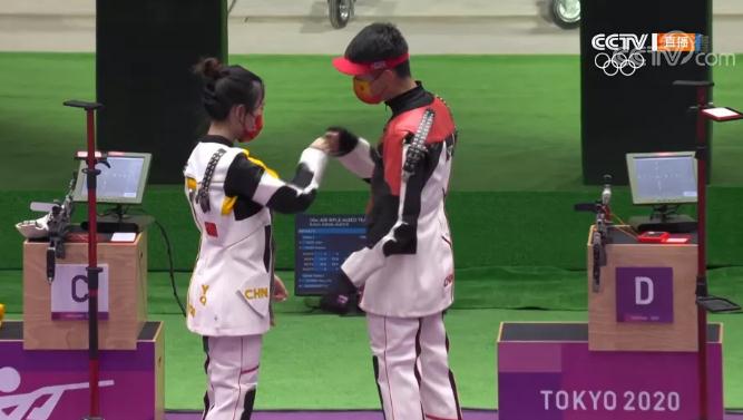 庞伟/姜冉馨射落十米气手枪混合团体金牌