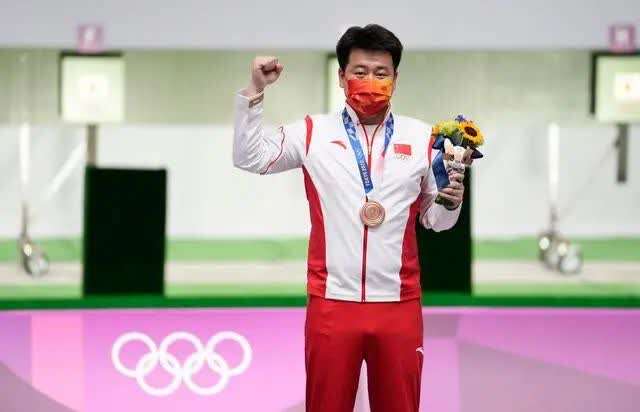 △男子10米气手枪决赛,庞伟获得铜牌东京奥运会男子10米气手枪比赛中庞伟获得了铜牌