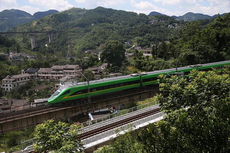 2021年7月25日,由重庆开往秀山县的“复兴号”动车组列车行驶在渝怀铁路黔江区濯水镇三门社区段。