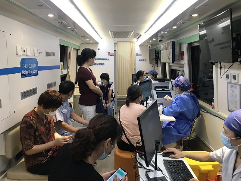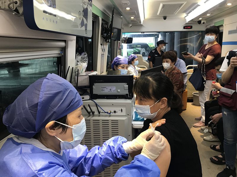2021年7月27日上午,杭州首辆新冠疫苗移动接种车开进杭州火车东站,为过往旅客提供为期一周的免费新冠疫苗接种。这是上城区卫生健康局联合火车东站管委会和彭埠街道采取的便民服务举措,让疫苗接种服务流动起来。