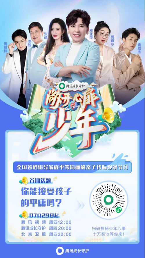 这档由腾讯成长守护平台和上海合颂文化传播有限公司联合出品的亲子代际观察节目,将多角度真实呈现家庭教育沟通中面临的诸多挑战,帮助每一个新时代家庭建立平等的青少年沟通模式。