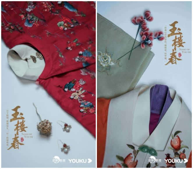 该剧造型指导宋晓涛介绍,《玉楼春》的剧情并不对应某个特定朝代,但故事参考的时代背景是明朝,所以剧中所有造型,包括近2000套服装,都是按照那个时代来进行设计的。比如,手工绣制的“百子图”“云肩”,都是明朝的特色;使用“半绣半绘、画绣结合”的方式,这是源于明嘉靖年间的技艺“顾绣”,如今已是国家级非遗。
