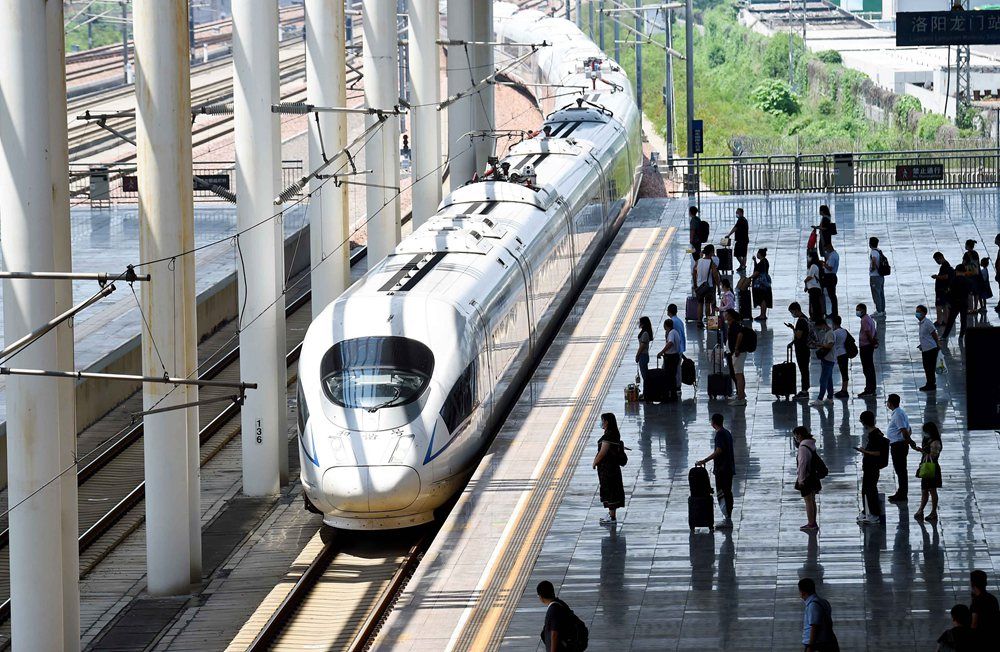 2021年7月30日,河南省洛阳市,旅客在洛阳龙门站乘坐高铁列车。目前洛阳龙门站各个方向的高铁列车基本恢复正常运行,日停靠列车170列。此时正值暑运期间,洛阳龙门站客流较大,日发送旅客2万人次,铁路部门工作人员认真值守,确保旅客出行安全。