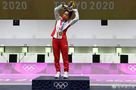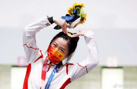 杨倩夺得2020东京奥运会射击女子10气步枪金牌,夺得东京奥运会首金。领奖台上,杨倩对镜头比心。